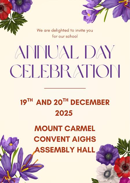 Mount Carmel Convent Anglo Indian ISC SchoolDecember 5, 2025Comment 0 Share this post ANNUAL DAY 2025 ANNUAL DAY INVITATION – 2025 Related Posts ISC 2024-25 Result Posted on May 6, 2025 ANNUAL DAY 2025 Posted on December 3, 2025 ADMISSIONS OPEN 2026-2027 Posted on December 3, 2025